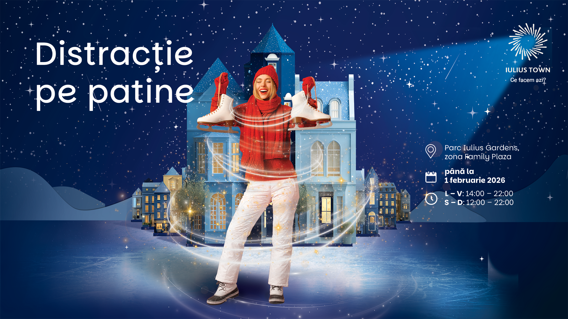 ⛸️ „Distracție pe patine” revine, de data aceasta într-o nouă locație: în parcul Iulius Gardens, zona Family Plaza, unde gheața se îmbină cu luminile și decorațiunile de iarnă. Patinoarul este amplasat în mijlocul zonei decorate festiv, astfel încât fiecare tură pe patine devine parte din atmosfera de sărbătoare, cu jocuri de lumini, decoruri de sezon și un cadru perfect pentru fotografii și amintiri în familie.